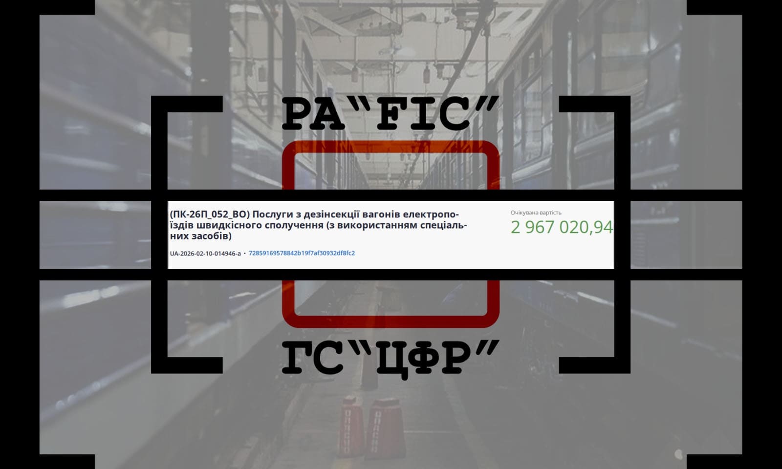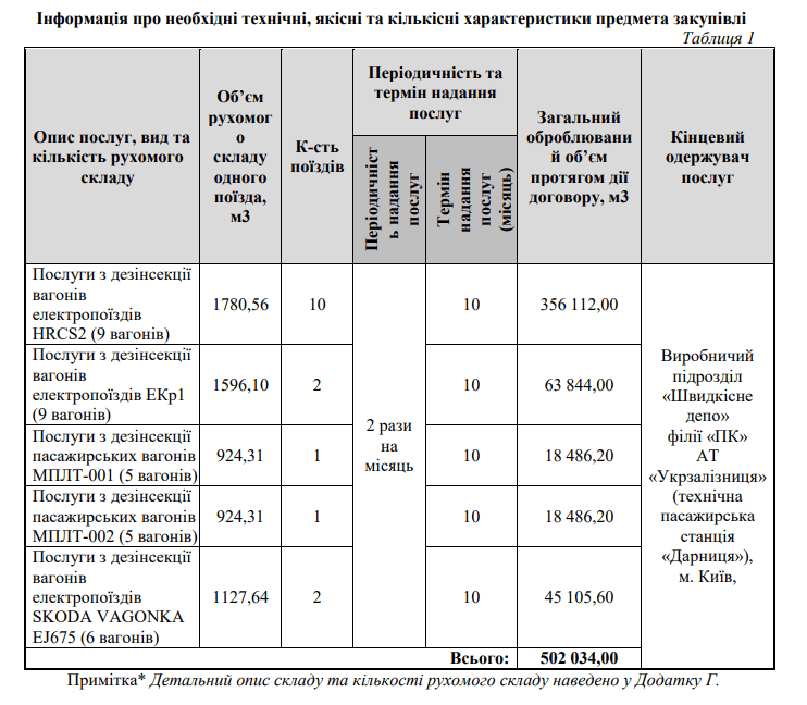 19 лютого ФІЛІЯ “ПАСАЖИРСЬКА КОМПАНІЯ” АКЦІОНЕРНОГО ТОВАРИСТВА “УКРАЇНСЬКА ЗАЛІЗНИЦЯ” провела закупівлю на послуги з дезінсекції вагонів електропоїздів швидкісного сполучення (з використанням спеціальних засобів).