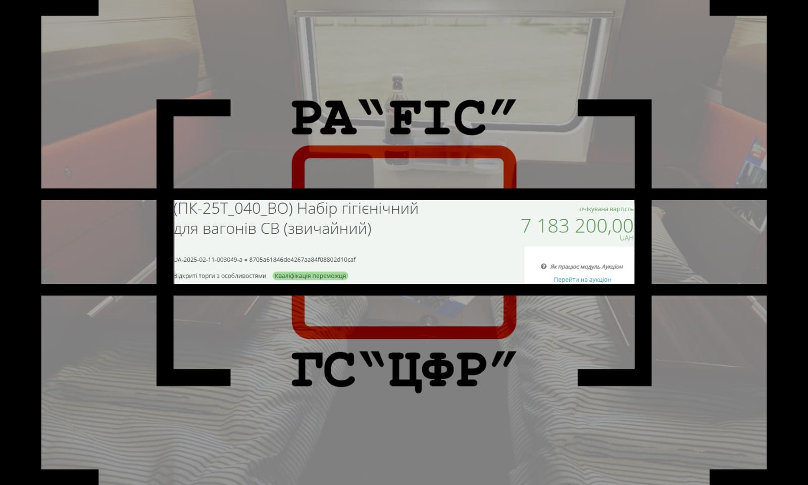 20 лютого ФІЛІЯ “ПАСАЖИРСЬКА КОМПАНІЯ” АКЦІОНЕРНОГО ТОВАРИСТВА “УКРАЇНСЬКА ЗАЛІЗНИЦЯ” провела закупівлю на набір гігієнічний для вагонів СВ (звичайний). Очікувана вартість 897900 комплектів склала 7 183 200 гривень.