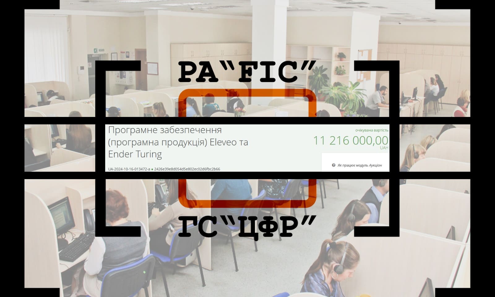24 жовтня Державна установа “Урядовий контактний центр” провів закупівлю на програмне забезпечення (програмна продукція) Eleveo та Ender Turing. Очікувана вартість закупівлі склала 11 216 000 гривень.