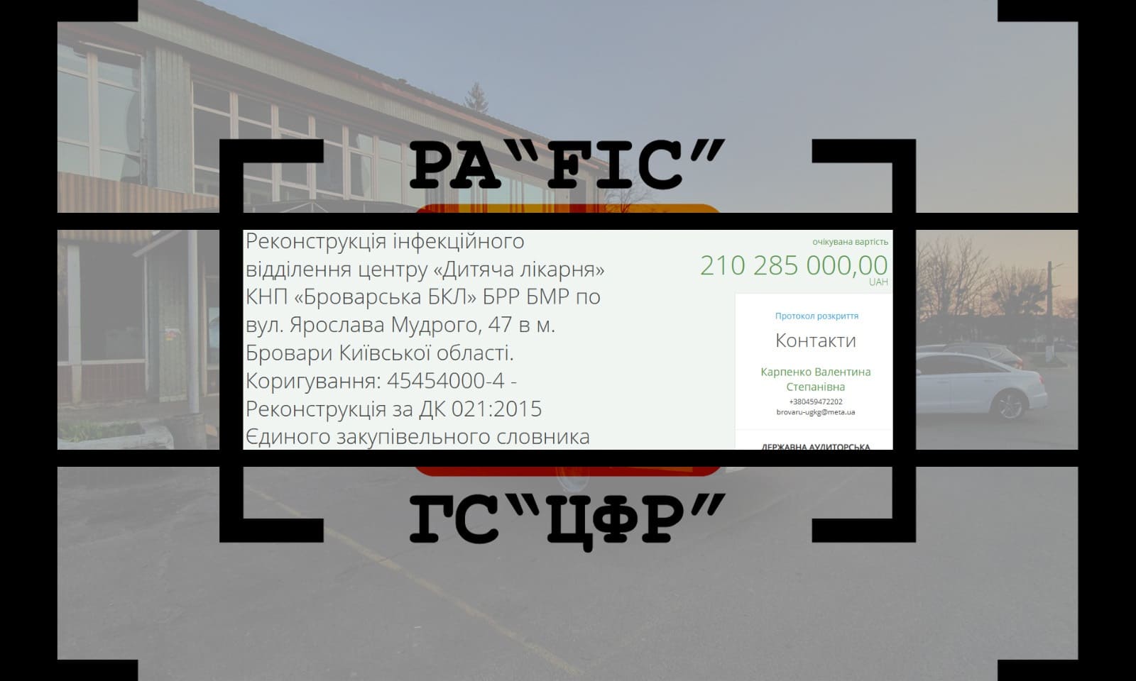 12 січня Управління будівництва, житлово – комунального господарства, інфраструктури та транспорту Броварської міської ради Броварського району Київської області провело закупівлю на реконструкцію інфекційного відділення центру “Дитяча лікарня” КНП “Броварська БКЛ” БРР БМР по вул. Ярослава Мудрого, 47 в м. Бровари Київської області. Коригування. Очікувана вартість закупівлі склала 210 285 000 гривень (175237505 гривень з Субвенції з державного бюджету місцевим бюджетам на реалізацію проектів у рамках “Програми з відновлення України”).