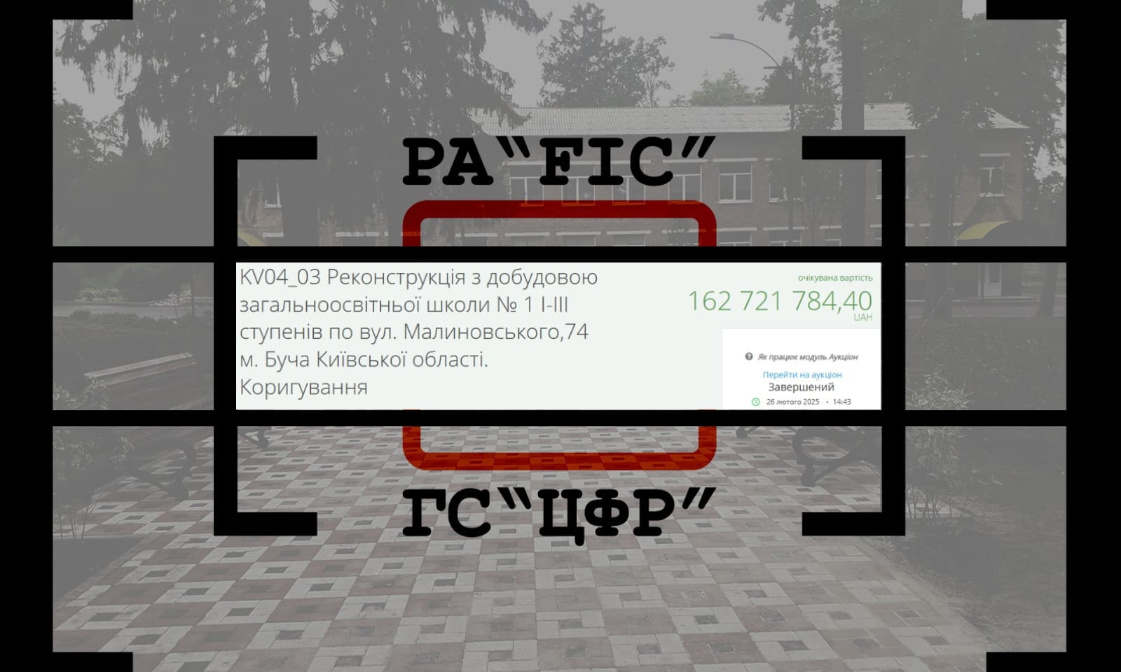 26 лютого Відділ освіти Бучанської міської ради провів закупівлю на реконструкцію з добудовою загальноосвітньої школи № 1 І-ІІІ ступенів по вул. Малиновського,74 м. Буча Київської області. Коригування. Очікувана вартість закупівлі склала 162 721 784,4 гривні (135 601 487 – Cубвенція з державного бюджету місцевим бюджетам на реалізацію проектів у рамках Надзвичайної кредитної програми для відновлення України та 27 120 297,4 гривні – місцевий бюджет).