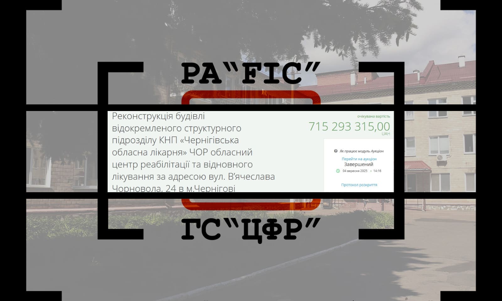 4 вересня Управління капітального будівництва Чернігівської обласної державної адміністрації провело закупівлю на реконструкцію будівлі відокремленого структурного підрозділу КНП “Чернігівська обласна лікарня” ЧОР обласний центр реабілітації та відновного лікування за адресою вул. В’ячеслава Чорновола, 24 в м.Чернігові.
