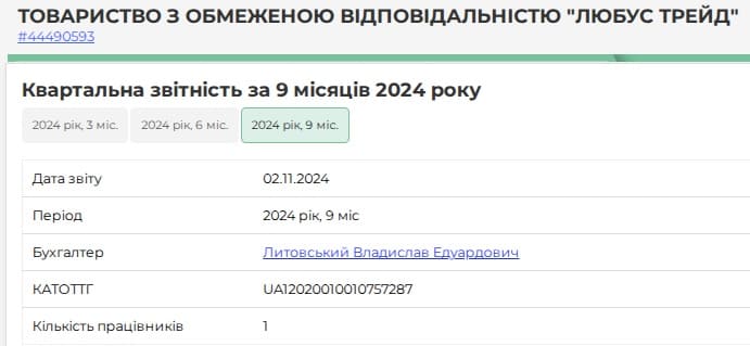 У 2024 році ТОВ звітував, що має одну людину в штаті.