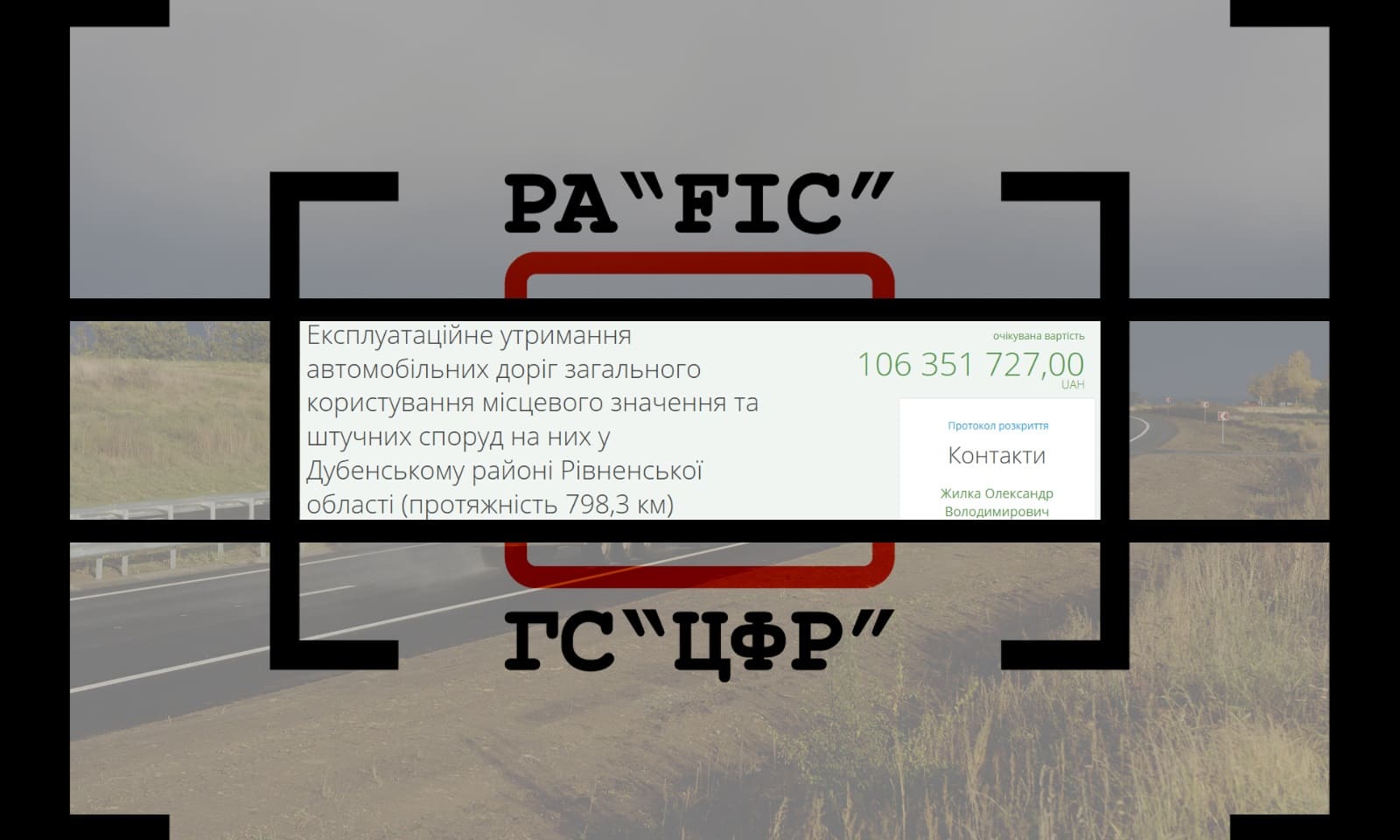 15 квітня ДЕПАРТАМЕНТ З ПИТАНЬ БУДІВНИЦТВА ТА АРХІТЕКТУРИ РІВНЕНСЬКОЇ ОБЛАСНОЇ ДЕРЖАВНОЇ АДМІНІСТРАЦІЇ провів закупівлю на експлуатаційне утримання автомобільних доріг загального користування місцевого значення та штучних споруд на них у Дубенському районі Рівненської області (протяжність 798,3 км).