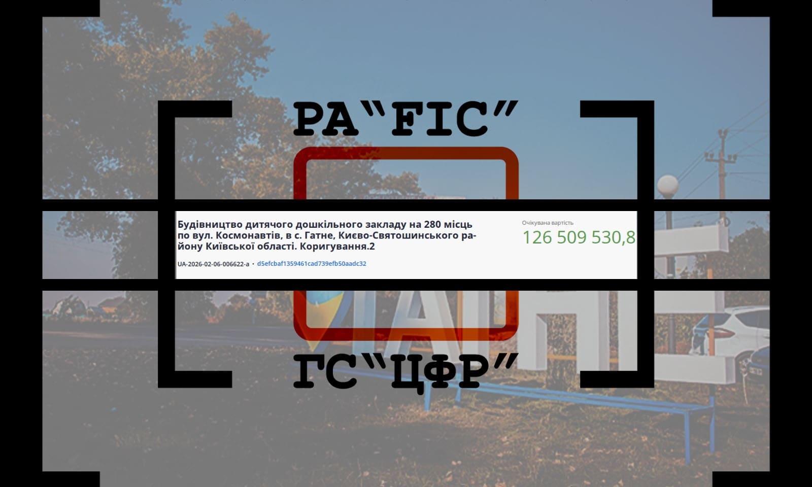 21 лютого ГАТНЕНСЬКА СІЛЬСЬКА РАДА ФАСТІВСЬКОГО РАЙОНУ КИЇВСЬКОЇ ОБЛАСТІ провела закупівлю на будівництво дитячого дошкільного закладу на 280 місць по вул. Космонавтів, в с. Гатне, Києво-Святошинського району Київської області. Коригування.2.