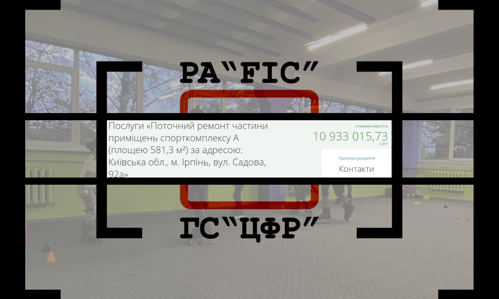 1 вересня Державний податковий університет провів закупівлю на послуги поточного ремонту частини приміщень спорткомплексу А (площею 581,3 м²) за адресою: Київська обл., м. Ірпінь, вул. Садова, 92а.