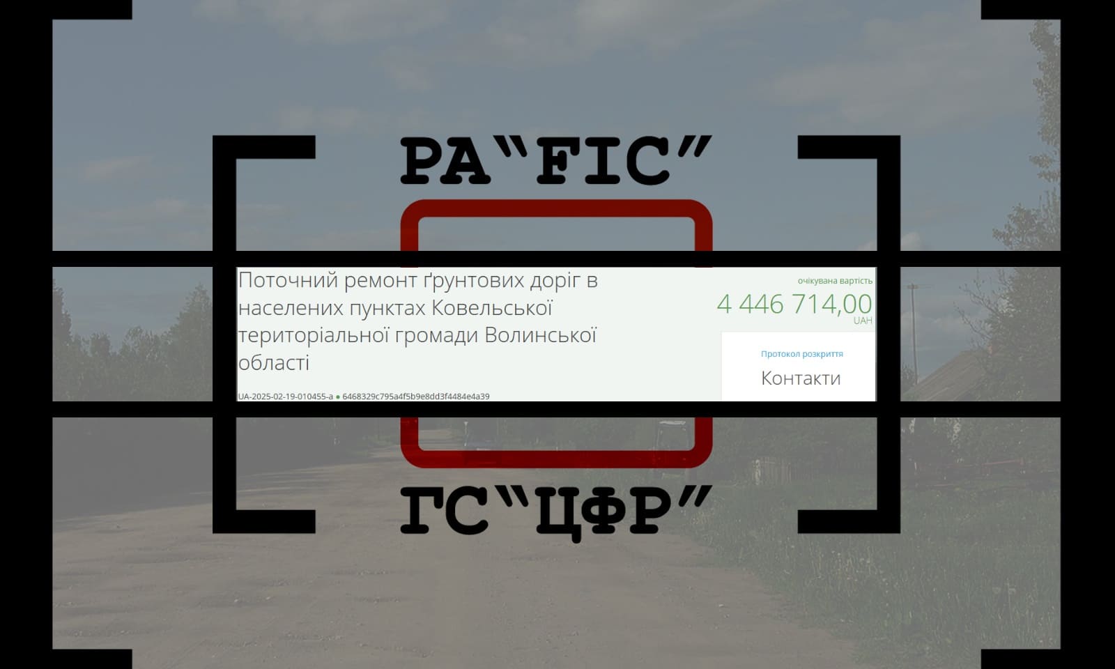 27 лютого УПРАВЛІННЯ КАПІТАЛЬНОГО БУДІВНИЦТВА ТА ЖИТЛОВО-КОМУНАЛЬНОГО ГОСПОДАРСТВА ВИКОНАВЧОГО КОМІТЕТУ КОВЕЛЬСЬКОЇ МІСЬКОЇ РАДИ провело закупівлю на поточний ремонт ґрунтових доріг в населених пунктах Ковельської територіальної громади Волинської області. Очікувана вартість закупівлі склала 4 446 714 гривень.