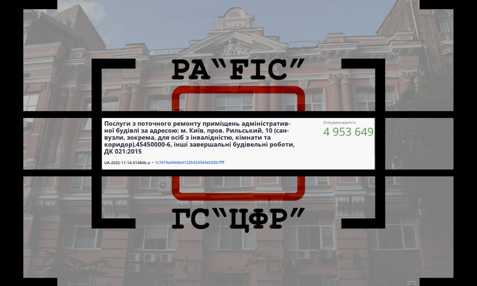22 листопада Міністерство юстиції України провело закупівлю на послуги з поточного ремонту приміщень адміністративної будівлі за адресою: м. Київ, пров. Рильський, 10 (санвузли, зокрема, для осіб з інвалідністю, кімнати та коридор).