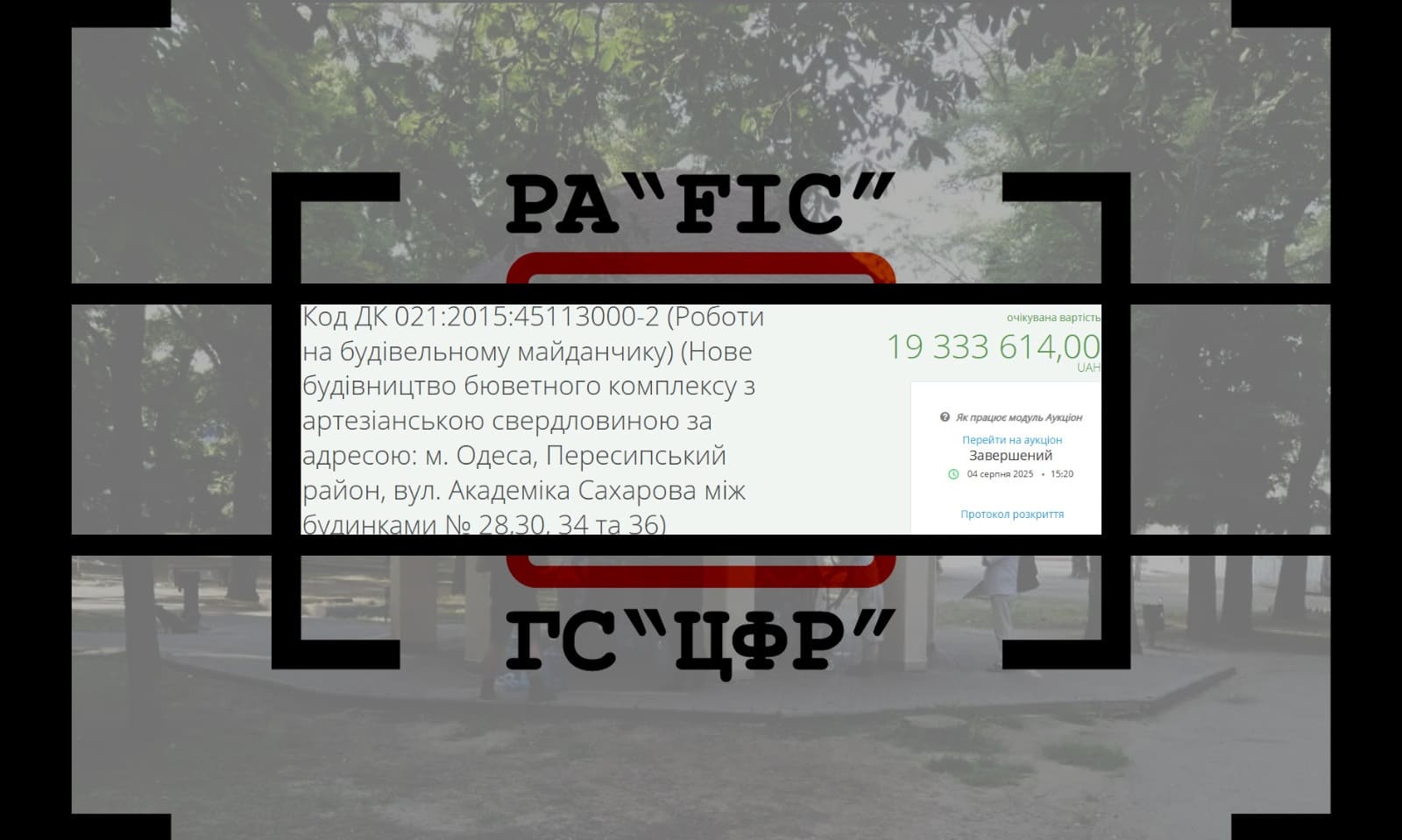 4 серпня Департамент екології та розвитку рекреаційних зон Одеської міської ради провів закупівлю на нове будівництво бюветного комплексу з артезіанською свердловиною за адресою: м. Одеса, Пересипський район, вул. Академіка Сахарова між будинками № 28,30, 34 та 36.