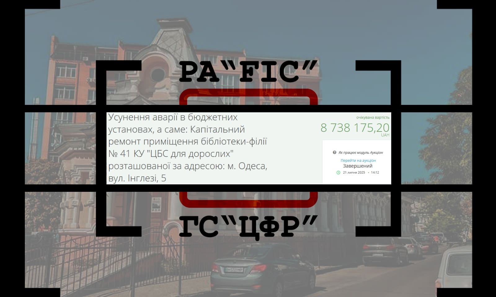 21 липня КОМУНАЛЬНА УСТАНОВА “ЦЕНТРАЛІЗОВАНА МІСЬКА БІБЛІОТЕЧНА СИСТЕМА ДЛЯ ДОРОСЛИХ” провела закупівлю на усунення аварії в бюджетних установах, а саме: Капітальний ремонт приміщення бібліотеки-філії № 41 КУ “ЦБС для дорослих” розташованої за адресою: м. Одеса, вул. Інглезі, 5.
