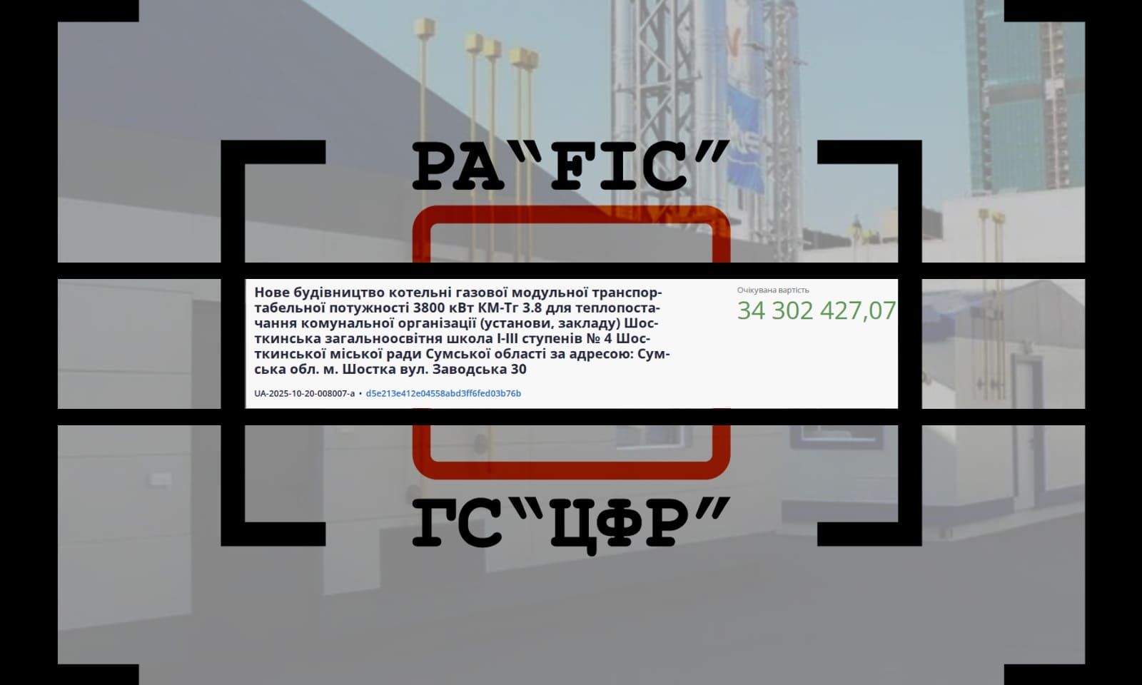 5 листопада Управління освіти Шосткинської міської ради провело закупівлю на нове будівництво котельні газової модульної транспортабельної потужності 3800 кВт КМ-Тг 3.8 для теплопостачання комунальної організації (установи, закладу) Шосткинська загальноосвітня школа І-ІІІ ступенів № 4 Шосткинської міської ради Сумської області.