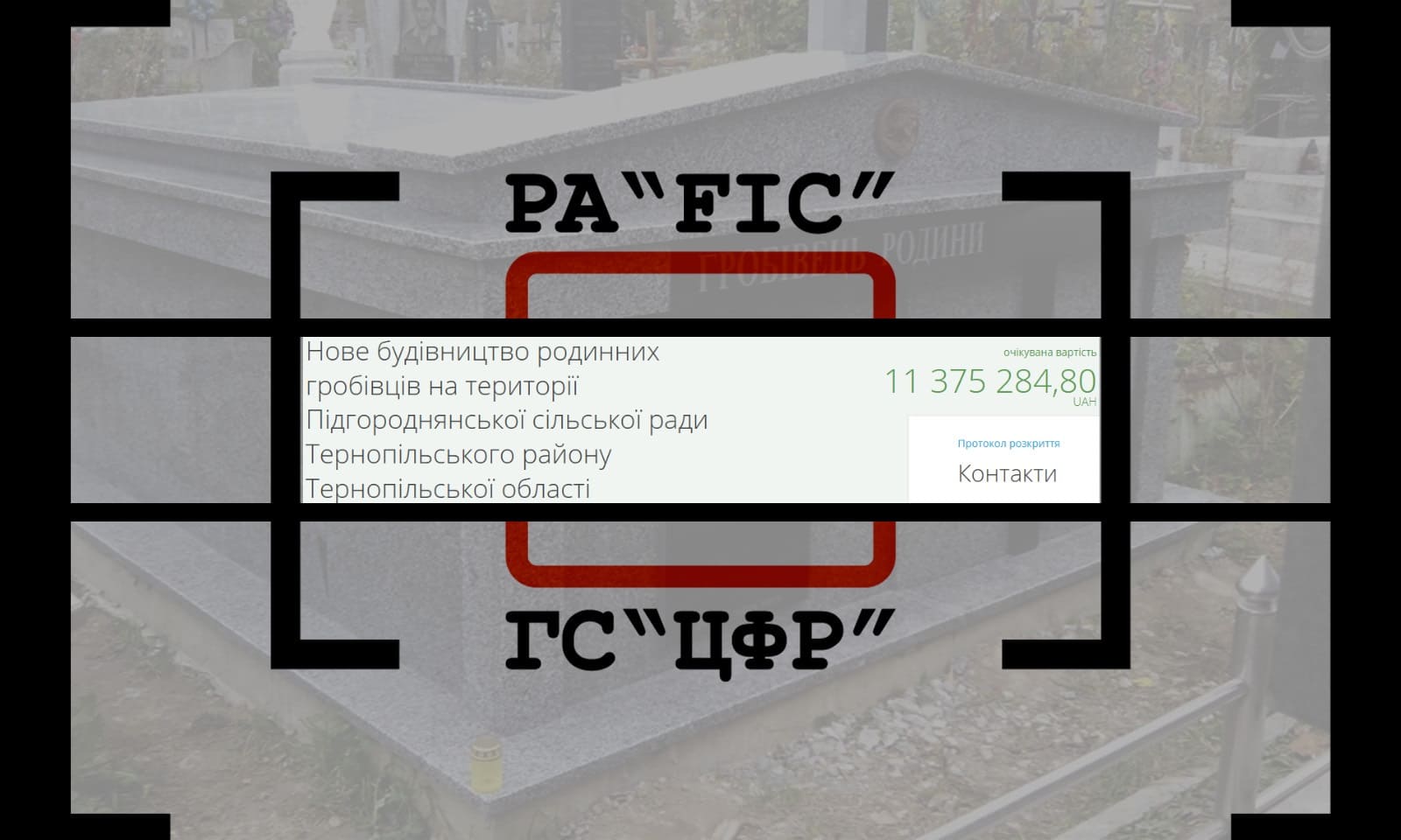 3 вересня Спеціалізоване комунальне підприємство “Ритуальна служба” (Тернопіль) провело закупівлю на нове будівництво родинних гробівців на території Підгороднянської сільської ради Тернопільського району Тернопільської області.