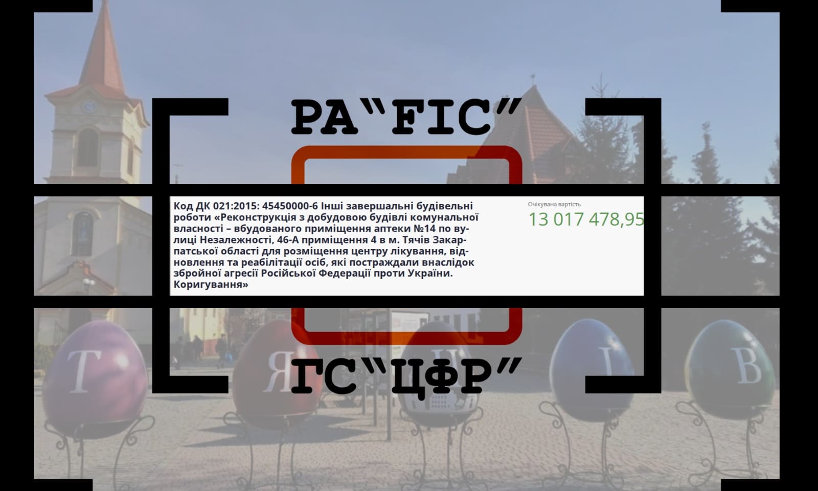 29 листопада ТЯЧІВСЬКА МІСЬКА РАДА ЗАКАРПАТСЬКОЇ ОБЛАСТІ провела закупівлю на реконструкцію з добудовою будівлі комунальної власності – вбудованого приміщення аптеки №14 по вулиці Незалежності, 46-А приміщення 4 в м. Тячів Закарпатської області для розміщення центру лікування, відновлення та реабілітації осіб, які постраждали внаслідок збройної агресії Російської Федерації проти України. Коригування.