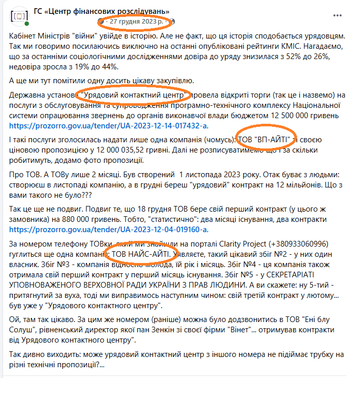 Якщо дуже коротко і спрощено, то усі навколоайтішні питання контактного урядового центру через різні ТОВки вирішують компанії Зенкіна. А тендери проводять номінально, для нас із вами.