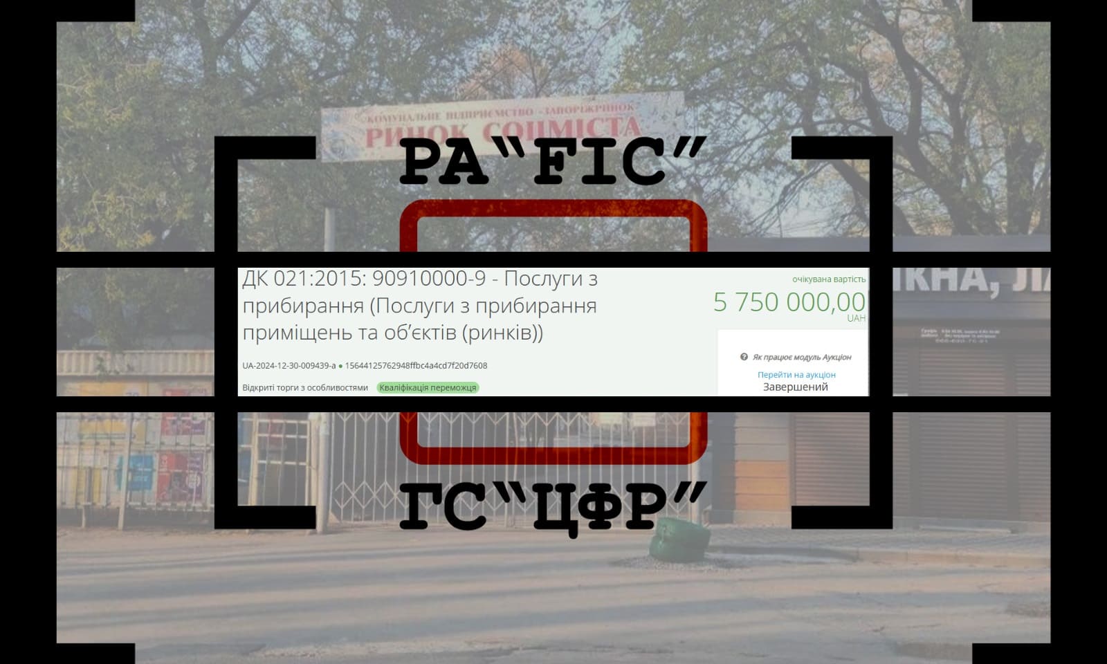 8 січня КП “Запоріжринок” провело закупівлю на послуги з прибирання приміщень та об’єктів (ринків). Очікувана вартість закупівлі склала 5 750 000 гривень.