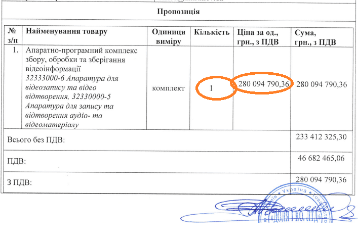 29 квітня Військова частина 3077 Національної гвардії України провела закупівлю апаратури для відеозапису та відео відтворення на 290 081 695,24 гривні.