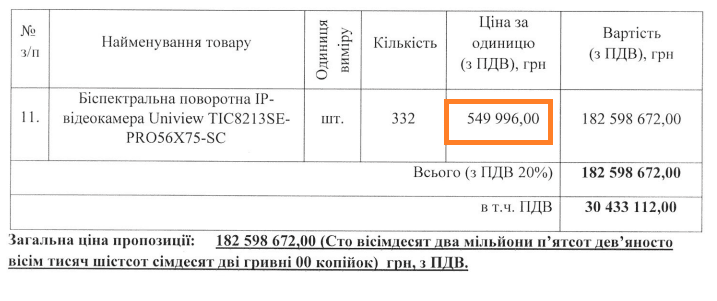 12 вересня Військова частина 2428 провела закупівлю біспектральних поворотних відеокамер. На 288 640 800 гривень хочуть придбати 332 штуки.