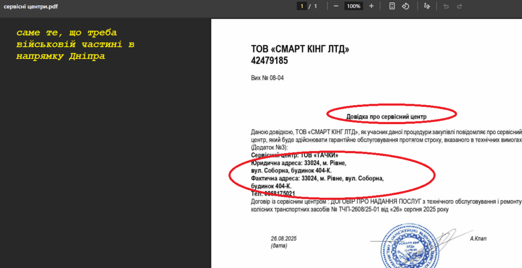 Звісно, військова частина з Дніпропетровщини хоче мати поблизу станцію обслуговування, сервісний центр. Є такий, тільки в Рівному. Л – логістика і С – сервіс.