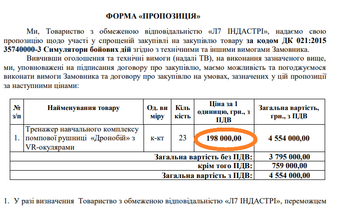 На торгах переміг єдиний учасник, ТОВ “Л7 ІНДАСТРІ”, який чітко вийшов під бюджет.