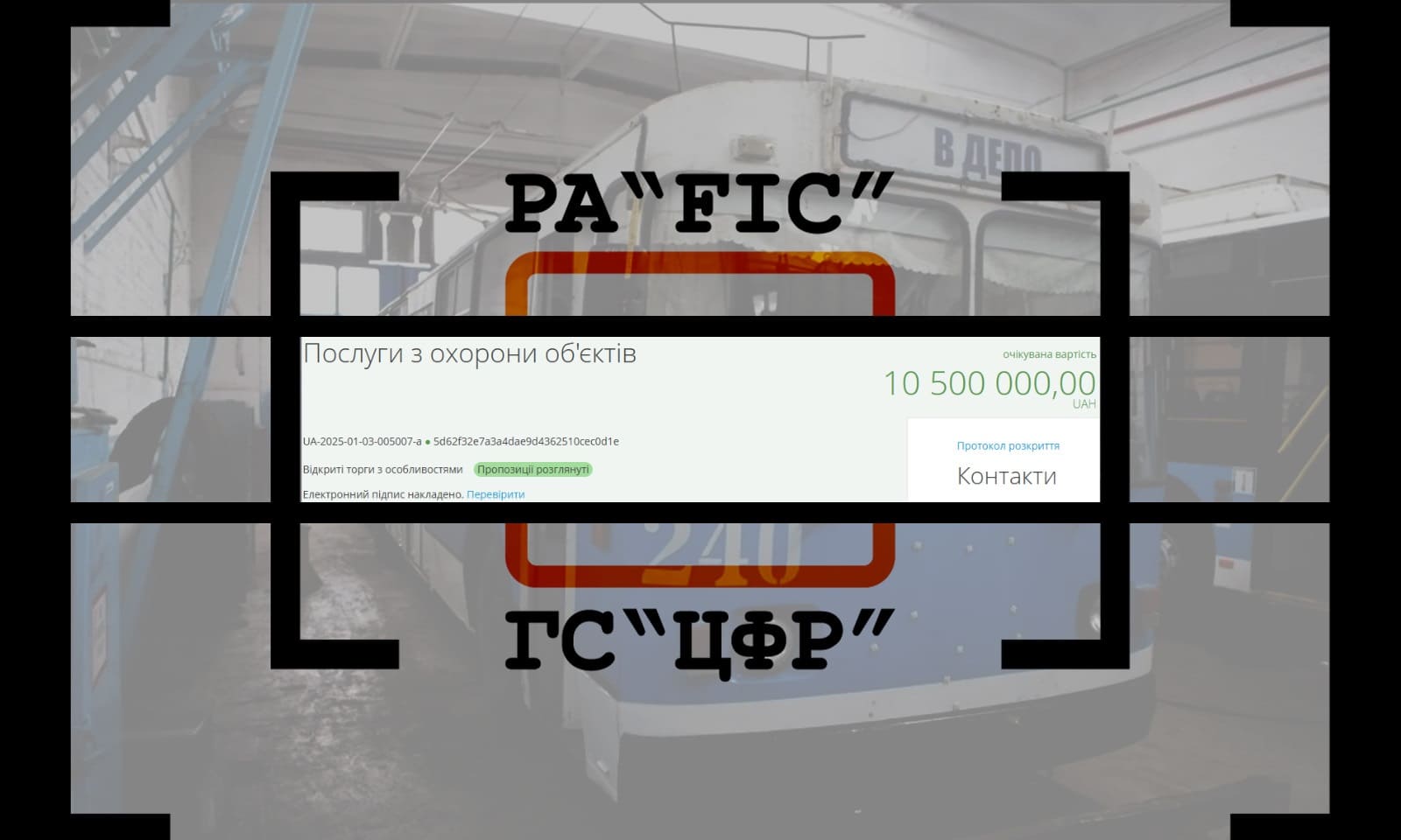 На торгах перемогло Приватне підприємство “Охоронно детективне агентство “Титан Захист” з пропозицією у 10 499 993,28 гривні. Таким чином, замовнику вдалось зекономити 6 гривень 72 копійки.