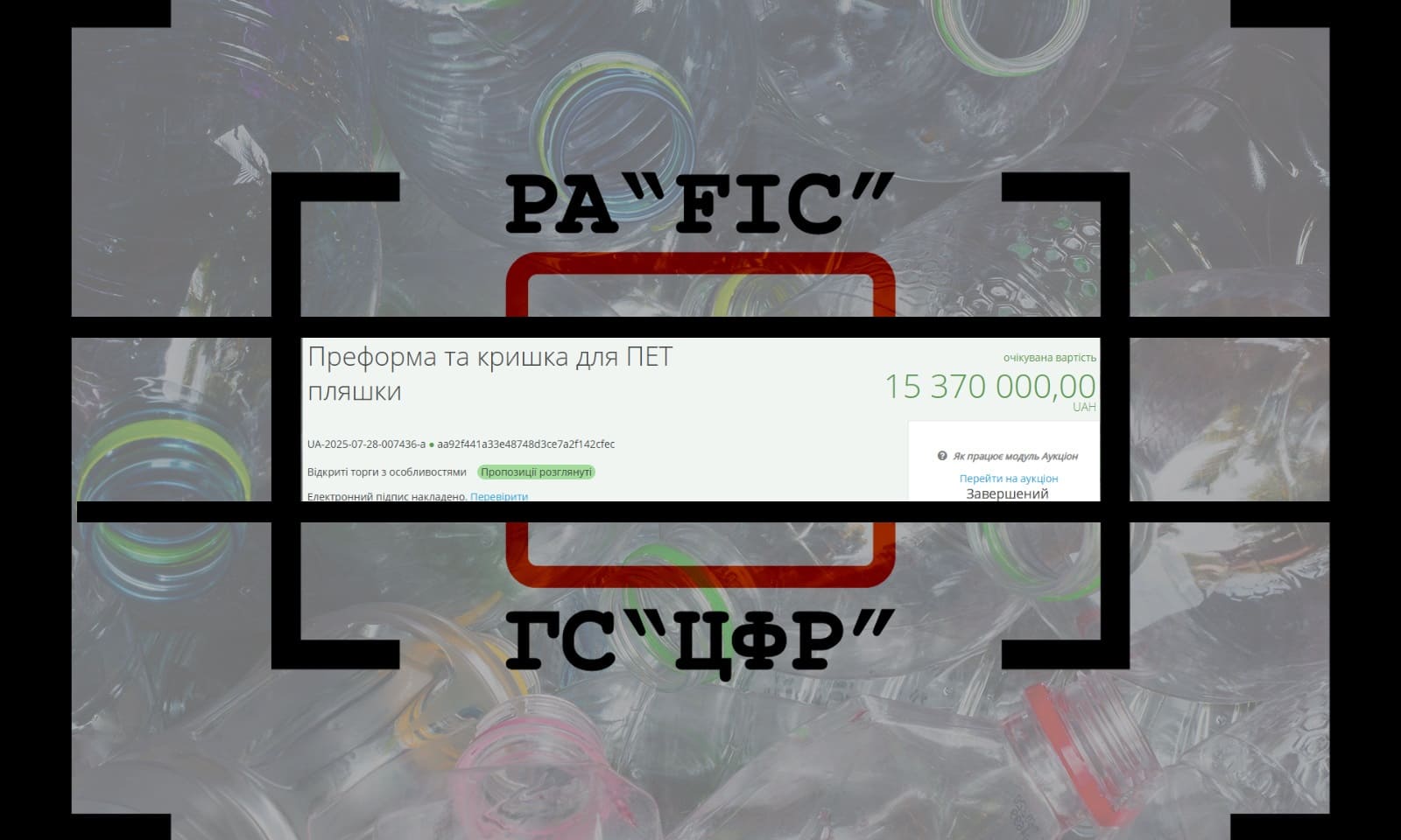 5 серпня Військова частина А1329 провела закупівлю на преформи та кришки для ПЕТ пляшки.