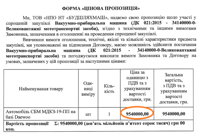 На торгах переміг ТОВ “НПО НТ “БУДШЛЯХМАШ” з пропозицією у 9 540 000 гривень.