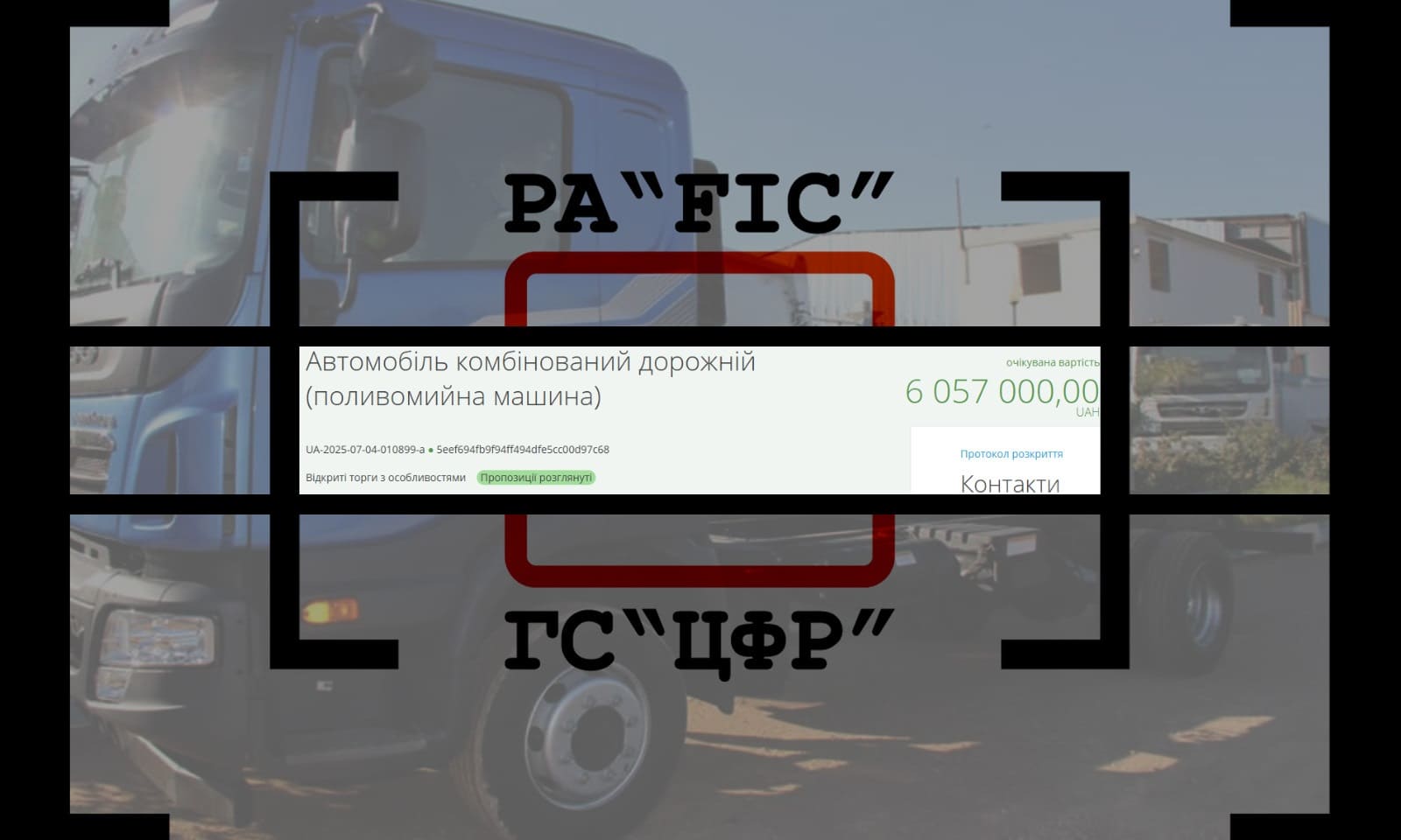 12 липня ДЕРЖАВНА УСТАНОВА НАЦІОНАЛЬНЕ ВІЙСЬКОВЕ МЕМОРІАЛЬНЕ КЛАДОВИЩЕ провело закупівлю на автомобіль комбінований дорожній (поливомийна машина) бюджетом у 6 057 000 гривень.