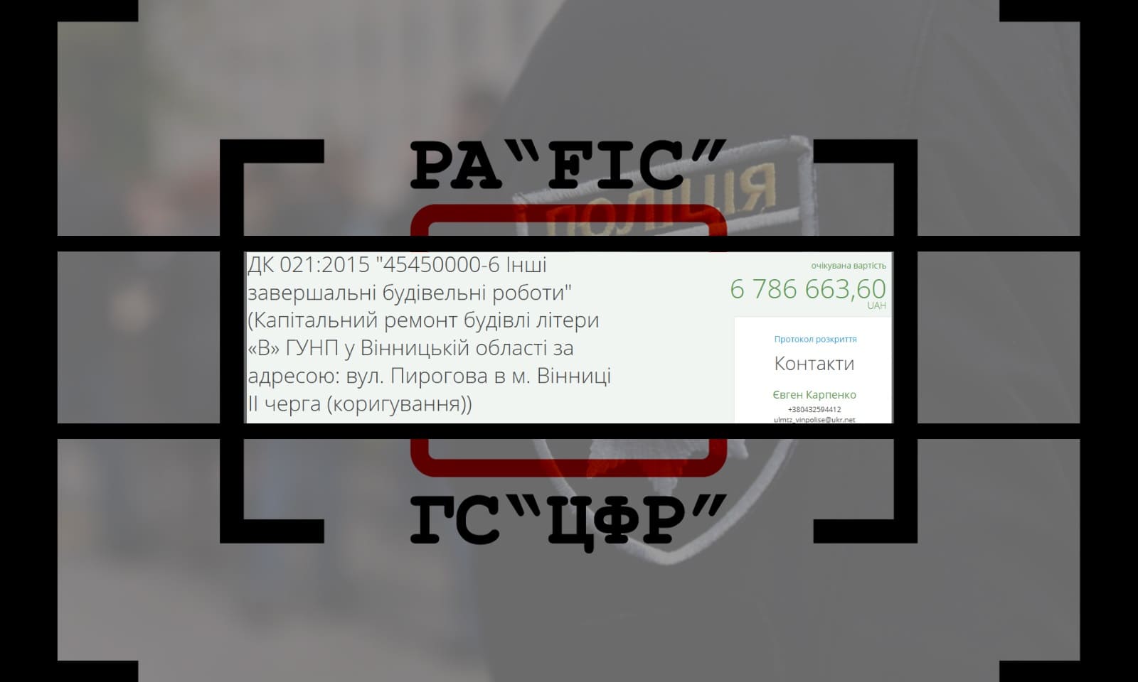 5 березня ГОЛОВНЕ УПРАВЛІННЯ НАЦІОНАЛЬНОЇ ПОЛІЦІЇ У ВІННИЦЬКІЙ ОБЛАСТІ провело закупівлю на капітальний ремонт будівлі літери “В” ГУНП у Вінницькій області за адресою: вул. Пирогова в м. Вінниці ІІ черга (коригування).