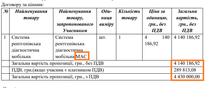 28 жовтня КОМУНАЛЬНЕ НЕКОМЕРЦІЙНЕ ПІДПРИЄМСТВО “ЛІКУВАЛЬНО-ПРОФІЛАКТИЧНА УСТАНОВА ЦЕНТРАЛЬНА МІСЬКА ЛІКАРНЯ ВУГЛЕДАРСЬКОЇ МІСЬКОЇ РАДИ” провело закупівлю на мобільну рентгенівську діагностичну систему.