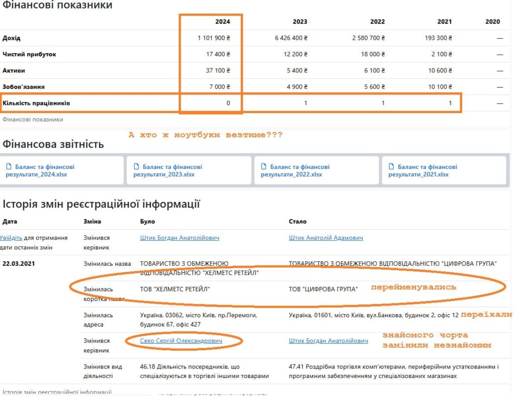 Там ще багато “дерев зв’язків”, які пов’язують ТОВ “ЦИФРОВА ГРУПА” з різними цікавими угрупуваннями. Але, як продавця ноутбуків для військових ми їх не бачимо.