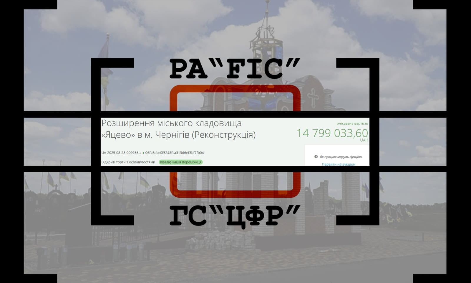 15 вересня Управління житлово-комунального господарства Чернігівської міської ради провело закупівлю на розширення міського кладовища “Яцево” в м. Чернігів (Реконструкція). Очікувана вартість закупівлі склала 14 799 033,6 гривні.