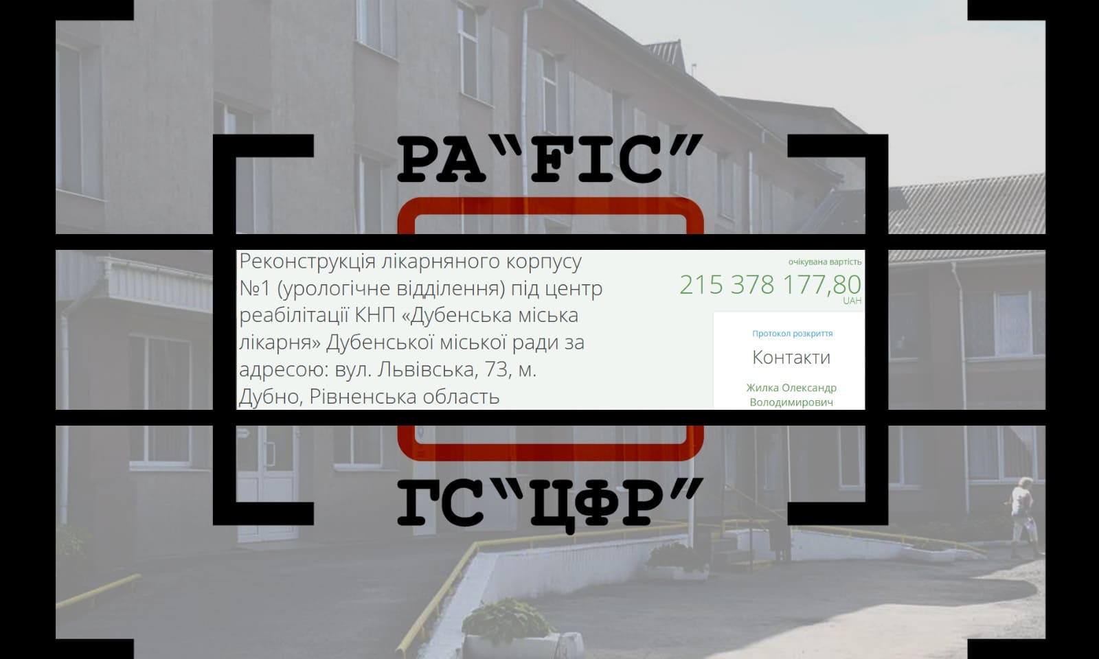28 січня ДЕПАРТАМЕНТ З ПИТАНЬ БУДІВНИЦТВА ТА АРХІТЕКТУРИ РІВНЕНСЬКОЇ ОБЛАСНОЇ ДЕРЖАВНОЇ АДМІНІСТРАЦІЇ провів закупівлю на реконструкцію лікарняного корпусу №1 (урологічне відділення) під центр реабілітації КНП “Дубенська міська лікарня” Дубенської міської ради. Очікувана вартість закупівлі склала 215 378 177,8 гривні (державний бюджет).