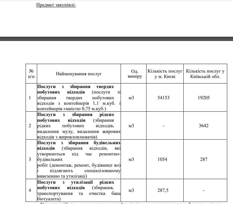 4 січня Київське квартирно-експлуатаційне управління провело закупівлю на послуги зі збирання твердих побутових, будівельних, рідких побутових відходів, утилізація рідких побутових відходів (збирання, транспортування та очистка бака біотуалета). Очікувана вартість закупівлі склала 22 867 902 гривні (державний бюджет).