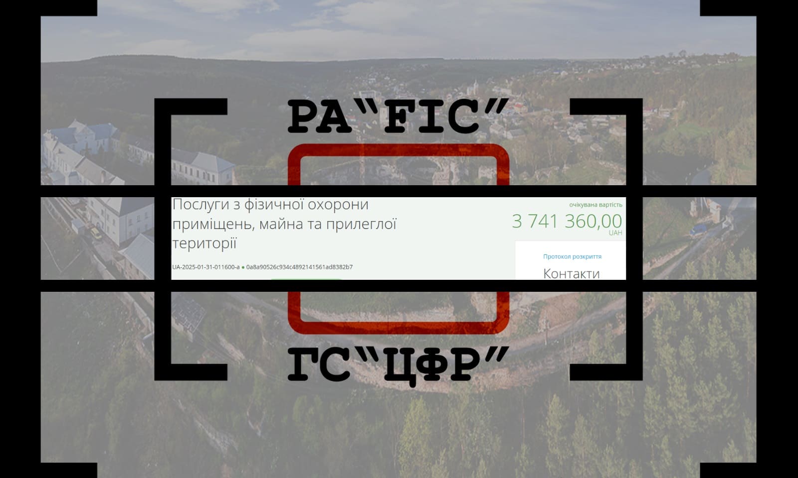 8 лютого НАЦІОНАЛЬНИЙ ЗАПОВІДНИК “ЗАМКИ ТЕРНОПІЛЛЯ” провів закупівлю на послуги з фізичної охорони приміщень, майна та прилеглої території. Очікувана вартість закупівлі склала 3 741 360 гривень (державний бюджет).