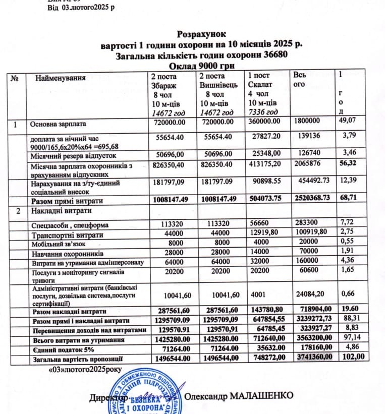 На торгах переміг єдиний учасник, ТОВ “СПЕЦІАЛІЗОВАНИЙ ПІДРОЗДІЛ ОХОРОНИ “БЕЗПЕКА І ОХОРОНА”, котрий вийшов чітко під бюджет.
