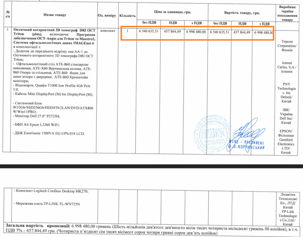 На торгах переміг єдиний учасник, ТОВ “Медична компанія “Медікус”, з пропозицією у 6 998 480 гривень.