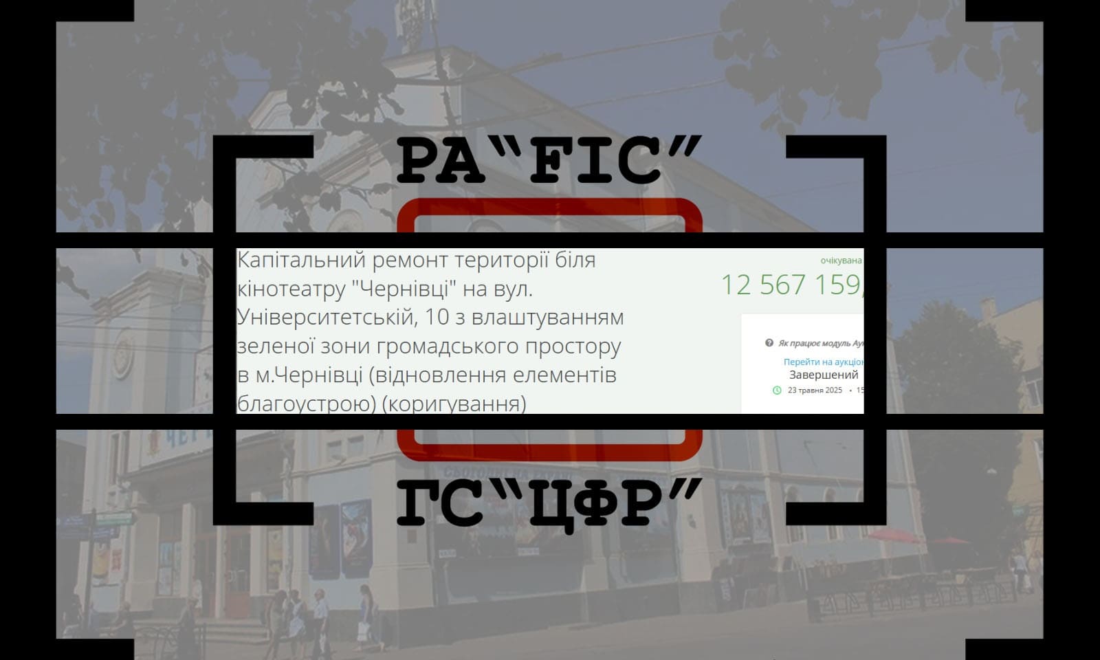 23 травня ДЕПАРТАМЕНТ ІНФРАСТРУКТУРИ ТА БЛАГОУСТРОЮ ЧЕРНІВЕЦЬКОЇ МІСЬКОЇ РАДИ провів закупівлю на капітальний ремонт території біля кінотеатру “Чернівці” на вул. Університетській, 10 з влаштуванням зеленої зони громадського простору в м. Чернівці (відновлення елементів благоустрою) (коригування).