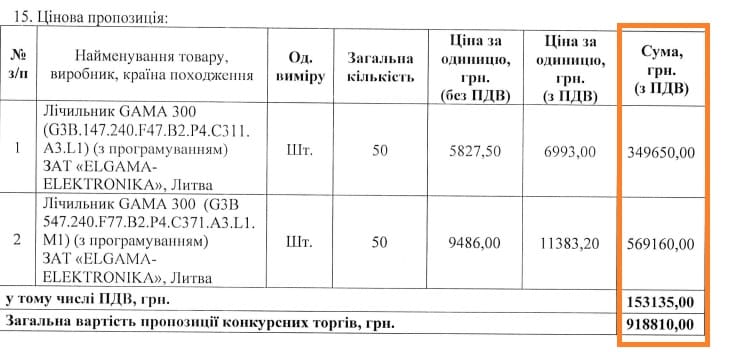 Переможцем у другому лоті на два блоки став ТОВ “ЕНЕРГО ОБЛІК” з пропозицією у 918 810 гривень.
