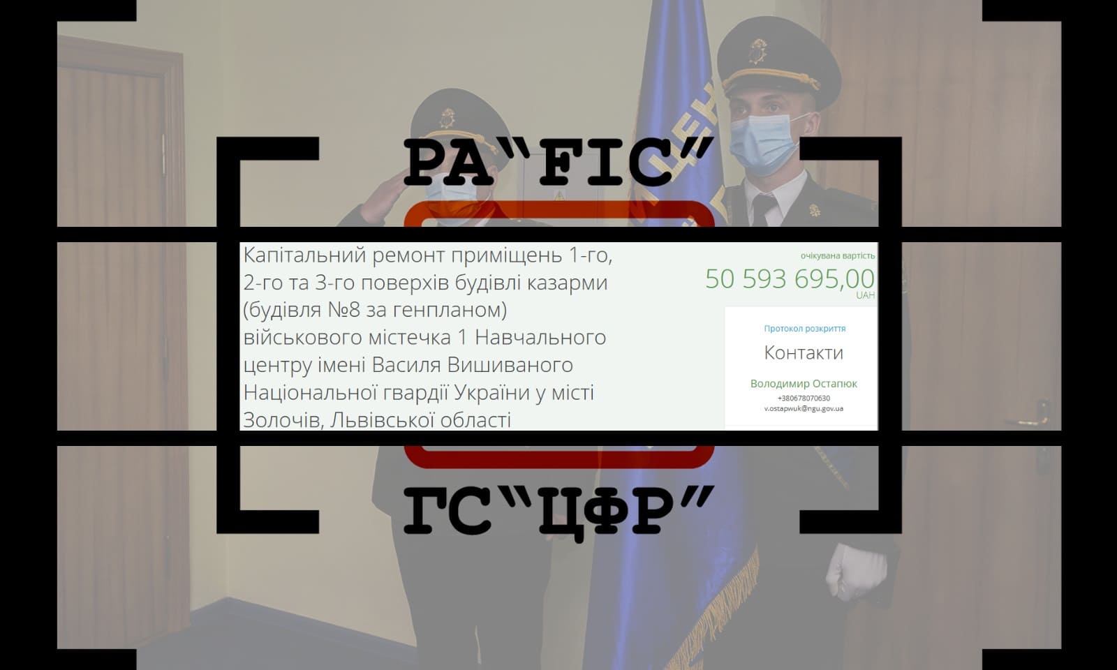 27 серпня Навчальний центр імені Василя Вишиваного Національної гвардії України (військова частина 3007) провів закупівлю на капітальний ремонт приміщень 1-го, 2-го та 3-го поверхів будівлі казарми (будівля №8 за генпланом) військового містечка 1.